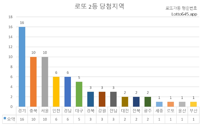 로또 2등 당첨자 72명은 경기 지역에서 16명으로 가장 많고, 충북 서울에서 각각 10명씩 당첨되었습니다.