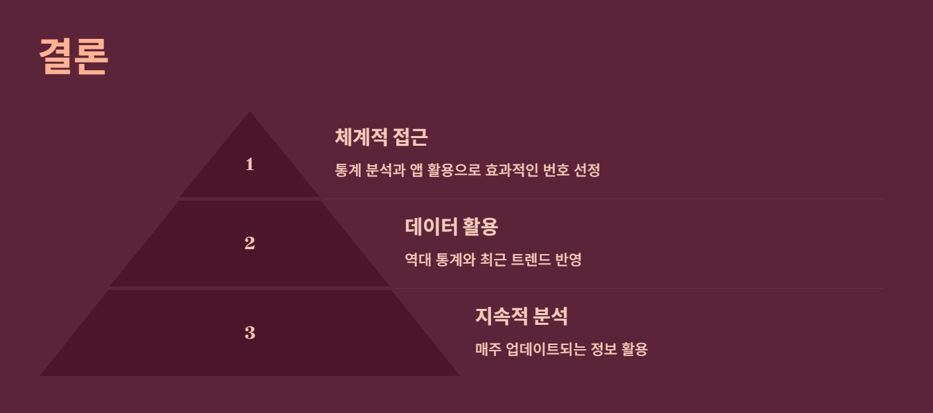 앱에서 "후보번호 받기" 기능을 활용하면 자동으로 최적화된 후보 번호들을 추천받을 수 있습니다.