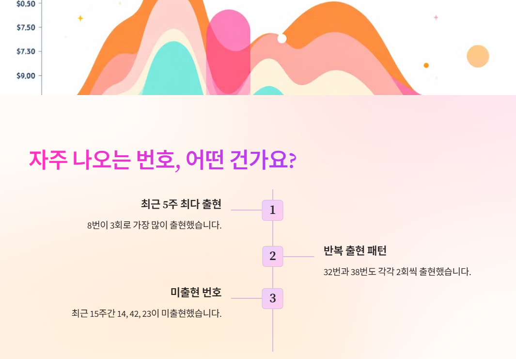 반면, 최근 15주간 미출현 번호는 14, 42, 23입니다. 이 번호들은 앞으로의 회차에서 주목할 만한 후보로 볼 수 있습니다.
