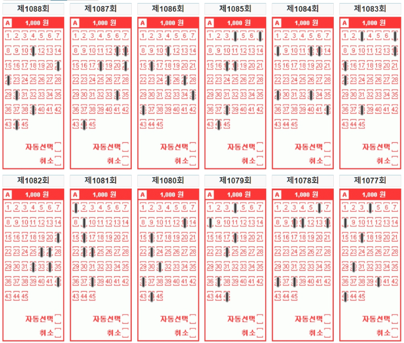 1089회 로또 번호는 좌상단에서 우하단으로 진행되는 모양새를 보일 것입니다. 로또패턴 흐름에서도 좌 우 흐름이 대세라고 할 수 있겠네요.
