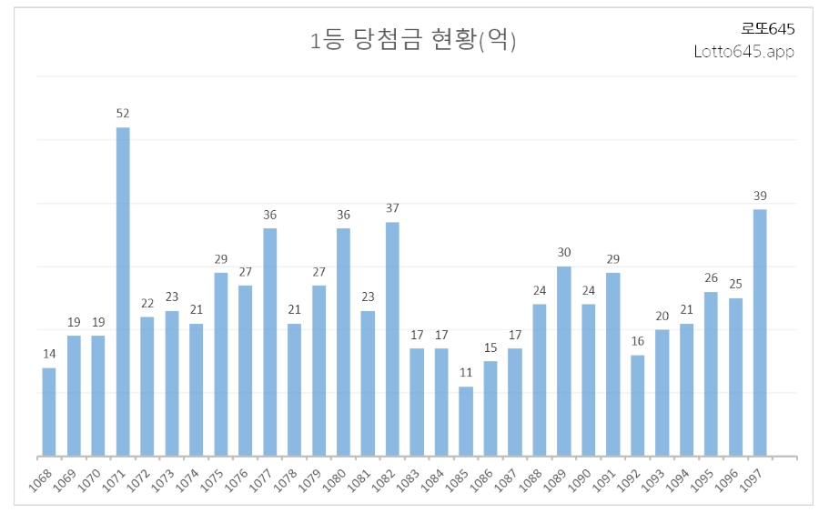 참고로 로또 1등 당첨금 현황입니다. 이번 39억원은 상당히 큰 금액이였습니다. 과거 1071회차에서는 52억원 1등 당첨금도 나왔죠.