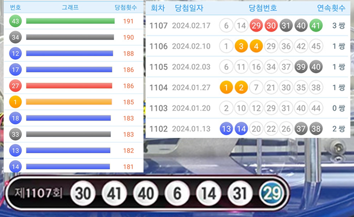 로또 잘 나오는 번호 분석과 1107회 로또 당첨번호 결과를 분석하여 로또 1108회 당첨 예상번호 조합을 선정해보겠습니다.